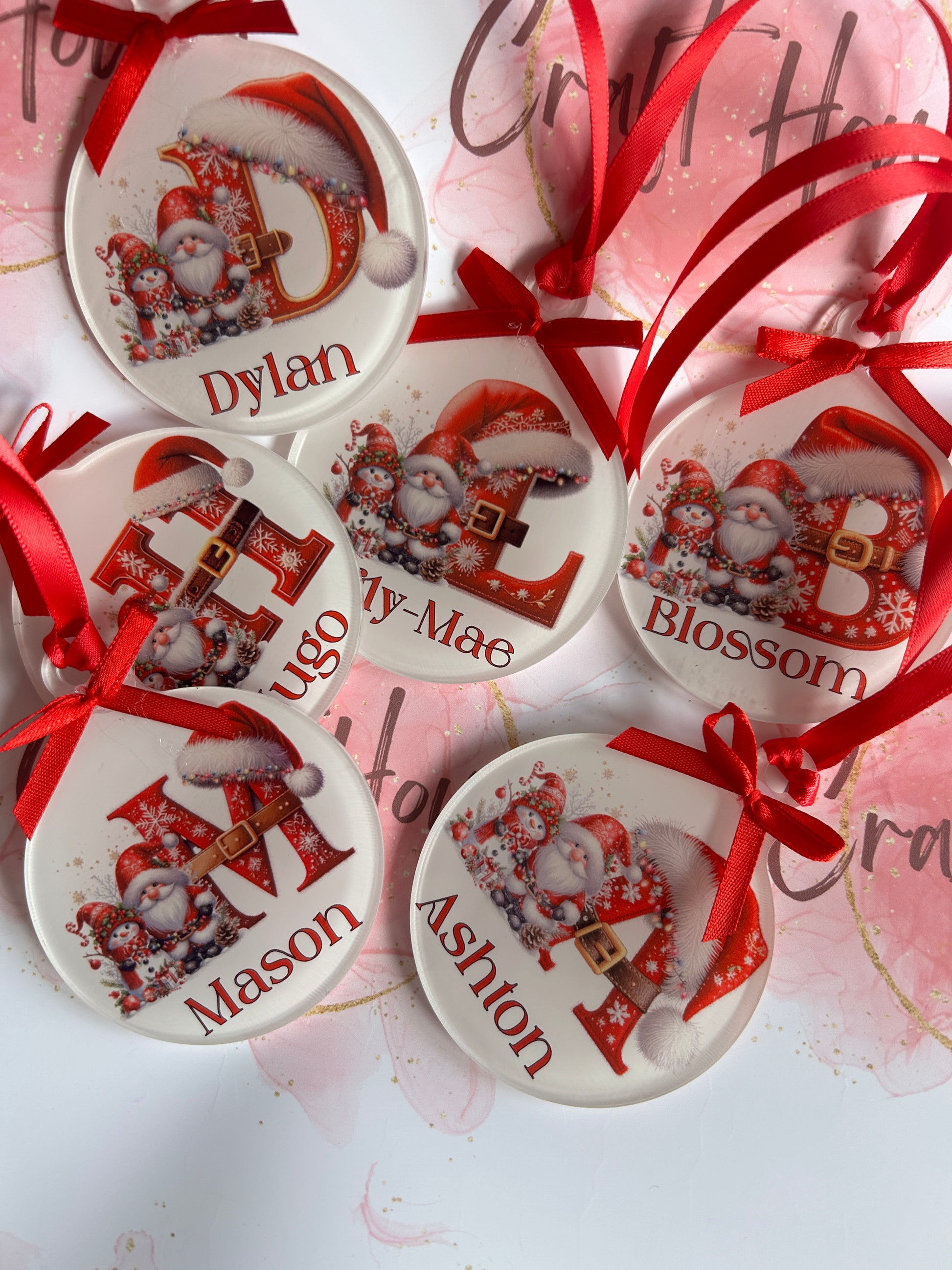 made from sub coated acrylic, come with letter and name.