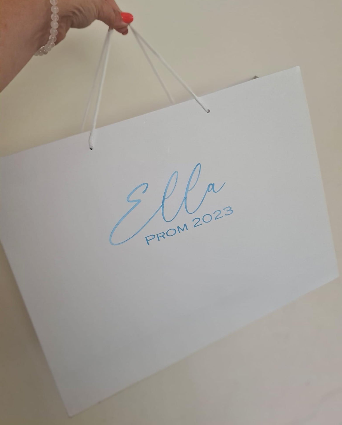 White Gift Bag decorated in your choice of wording, and finished off with a matching or contrasting bow.